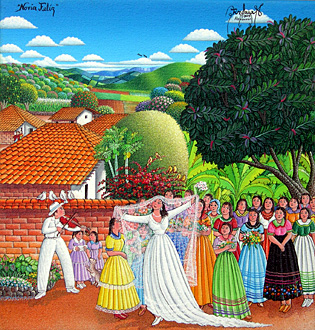 Included in the exhibit is Dutch artist, Anneque Lijnkamp Truyen, who delights with the ladies along the river playing musical instruments. Her story brings a sense of joy and freedom to play loud, laugh at all times and dance, dance, dance until you drop. Honduran artist, Roque Zelava Acosta, introduces The Happy Bride to tell the story of the true luxuries of life available to everyone- love, romance, music and lush landscapes. Charlotte Lachapelle from France brings to life all of the magic of childhood toys lost in a dark attic.