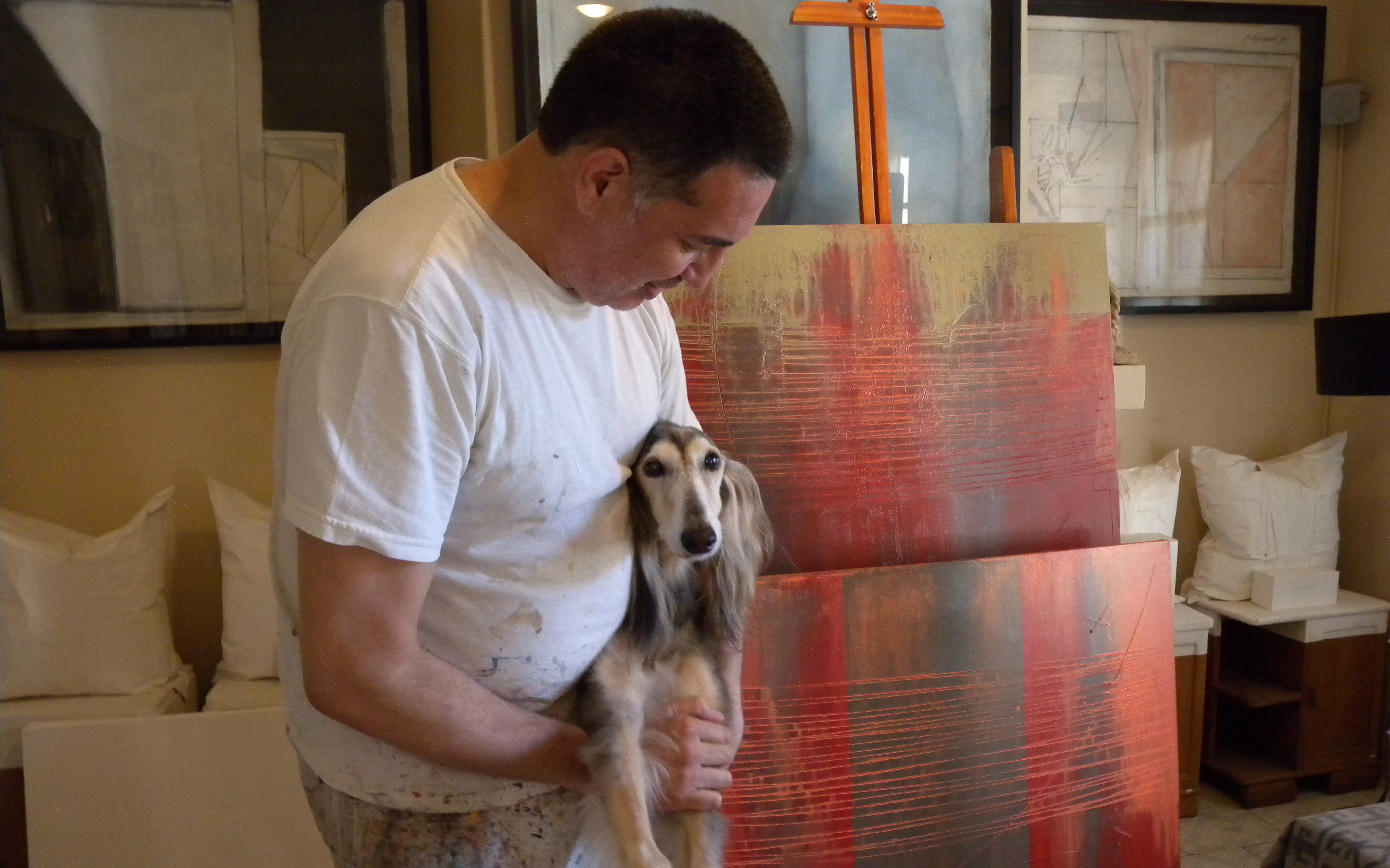 Influenced by his studies of architecture and the Renaissance masters, each painting, each creation is a moment of time both with a past and a future. The colors mimic a soft creamed gold texturized church walls with a etching of Saint Asuncion Madonna with her crown. The tension between the tradition of Roman Catholicism well established in Paraguay and the desire for a free open sky. Or the earth red texturized canvas leaving open space to contemplate, imagine with lines to follow with a choice of direction either in a straight line or in a semi-circle. Numbers, symbols etched into the paint reveal a simple moment of thought.