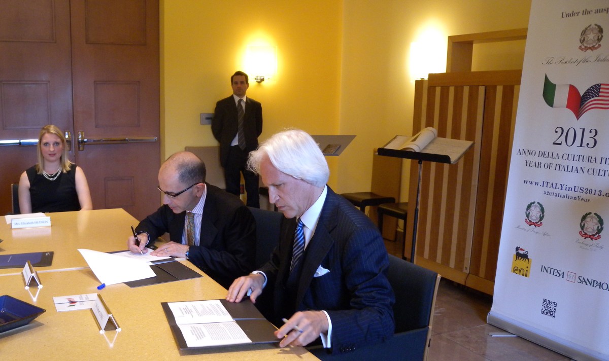 Signing the return of the books to Italy.