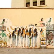 Mourning mural inspired by the Ancient Egyptian Tomb or Ramose, mourning the 70 football (soccer) spectators who died in Feb. 2012 (Used with permission, Artist: Alaa Awad, Photographer: Ali Khaled, Feb. 2012)