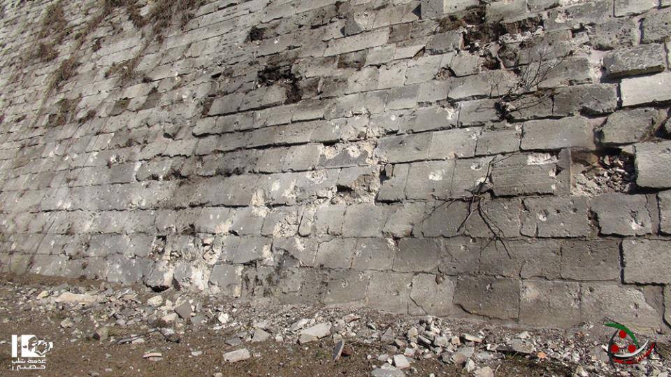 Crac des Chevaliers, Glacis, exterior wall damage (Photo by Dick Osseman, 2010. Copyright protected. All rights reserved.)