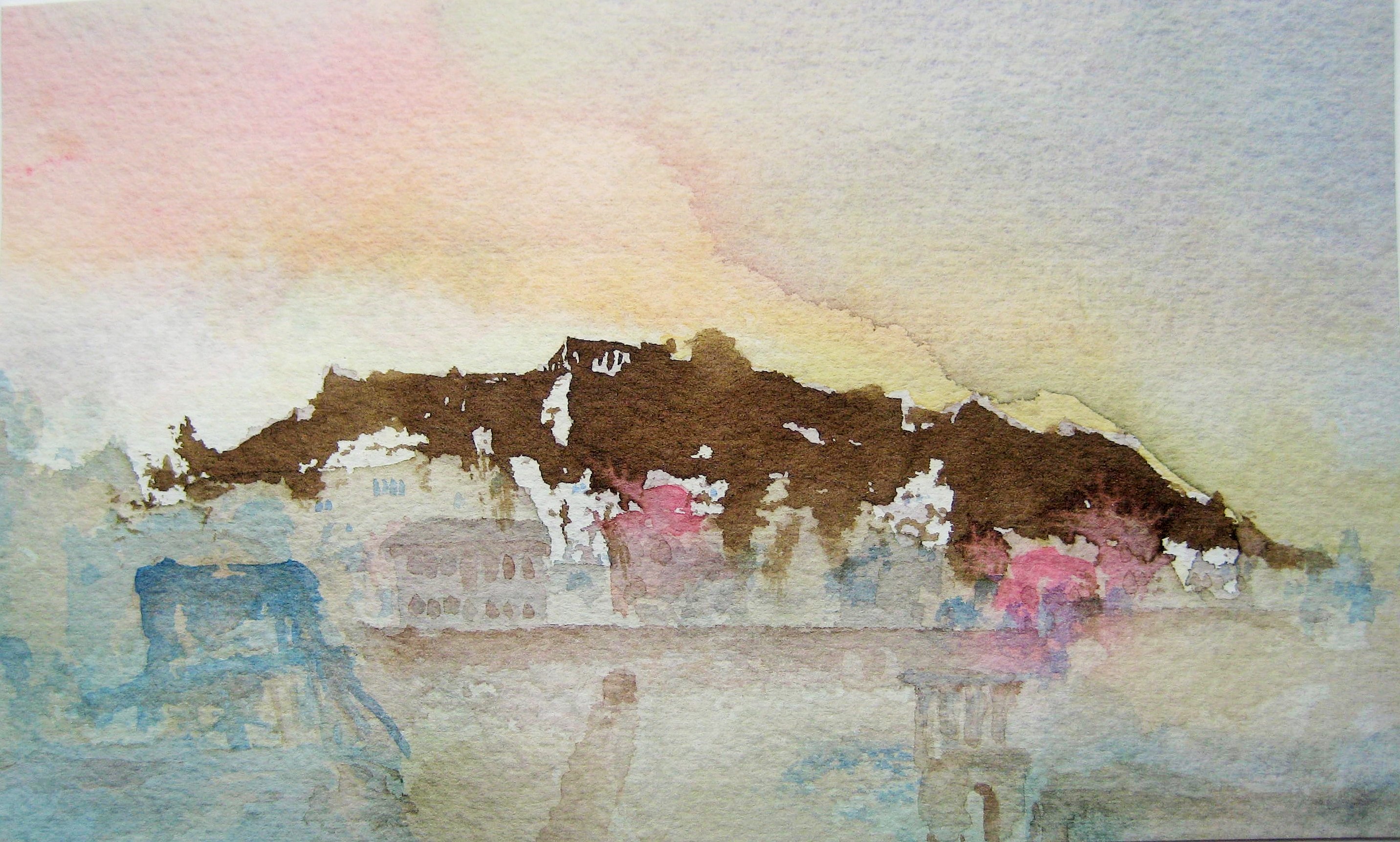 Acropolis, view from Kolonos Agoraios, above Agora, watercolor, May 10 2014, by U.S. Ambassador to Greece David D. Pearce