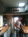 As though, Austin explained, he was creating a 3-D puzzle. Every item within has multiple purposes or at least fits within with ease. For example, the air conditioner fits in the long window during the summer and underneath the seating area of the living room during the winter. The ladder to the sleeping area of the loft, fits on the wall perfectly during the day inconspicuously acting as a work of art to the guest. The back center window, feet from the kitchen opens from the bottom to make it easy to clip herbs growing on outdoor ledge.