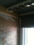 - Bathroom area and magnetic storage containers atop on steel beams supporting loft above.